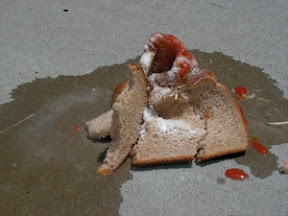 It’s a volcano..can’t you tell? Liam decided today, out of the blue, that he wanted to make a volcano today out of bread and spaghetti sauce (for the lava). I decided what the heck, let’s do it. So we pieced together a volcano and he poured the sauce on top. We then added baking soda and vinegar and…kaboom…we had ourselves a volcano. He thought it was great so made another one with more baking soda and vinegar. He was pretty impressed with the whole thing, but now my driveway smells like vinegar.