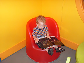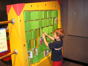 We had a busy day today. It was Clown Day at Crown Center. We got there a little early so we headed over to the exhibit called Brain Play, which is an exhibit about problem solving and optical illusions. It was more for the early elementary set, but the boys still had fun. We then went outside and had a picnic lunch by the fountains and by the time we were done with that it was almost time for the clown show to start. Liam really enjoyed the clown show. Some of the humor was over his head, but he still had a good time. Colm wasn’t quite sure how he felt about the clowns. He was alright with them as long as they kept their distance. The boys were super tired after all that and they took a great nap this afternoon.