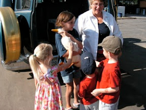 We started our day with a yummy breakfast at the Waffle House with Grandma and Grandad and then headed off to the county fair. It was hot, but we had a lot of fun and got to see and touch quite a few animals. We ended the day with a frozen lemonade treat.
