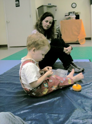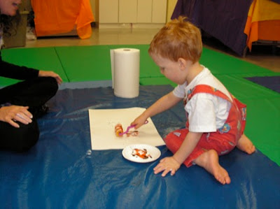 Colm loves going to art class. I originally signed him up because he wants to paint at home all the time. I don’t mind letting him paint, but he just won’t stop. So I figured at least with this there is a starting point and an ending point to the class and he will have to stop painting because everyone is leaving. This is a great class. It’s not just painting, either. Every week there is a theme that all of their activities are centered around. They also play with play-doh, build with huge foam blocks, use stamps, play dress-up, read books, sing songs…it’s great. He also has a great teacher.