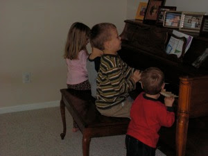 Then we had a jam session on the piano. Yes, all four of them are playing at once.