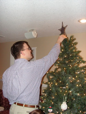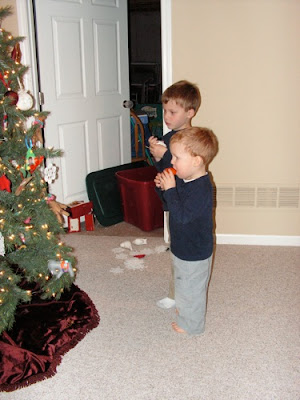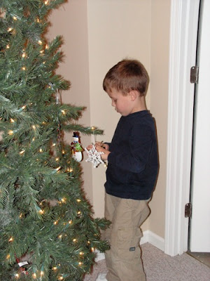 Liam HAD to decorate the tree today. So we dragged it out of the basement and let the festivities begin. Liam did most of the decorating and Sean put the star on top. Colm wasn’t interested in decorating, so he played us a tune on his whistle-instrument thing.