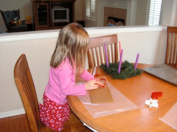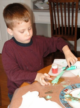 Then the boys made some crafts, like a sticker nativity scene, a Christmas button and a Christmas lace-up project. We also colored some Christmas coloring sheets.