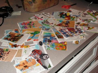 Liam has been busy cutting pictures from magazines so that he can use them as visual aides when writing his letter to Santa. He said he wanted to make sure that Santa knew what the toys looked like. He was also sure to include the descriptions of the toys so that Santa would know what else came with the toy. Someone is going to be very disappointed on Christmas morning. Hopefully he will forget about some of the things he cut out and perhaps he will get some of them for his birthday which is what Santa had to do last year because Liam sent his letter too late.