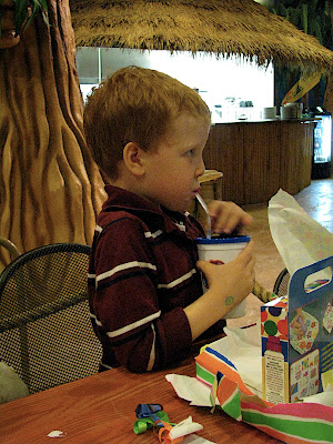 Well, I know what Colm would do…he would eat his own vomit. Yep, you read that right. Let me explain. Colm had not gotten a chance to ride in Sean’s new car and he WANTED to-badly! So, tonight during dinner Colm decided he wasn’t going to eat his chicken or his corn or his mashed potatoes and gravy. So, Sean said we could go get custard after dinner if Colm ate his dinner. No deal. Sean then threw in that we would take his new car to get the custard-Colm was ready to eat! So, he started with the chicken which I liberally doused in ketchup. He ate the first bite no problem. He ate the second bite and began to gag uncontrollably until he threw up in his plate. I was laughing so hard (but trying my best to hide it). I told him it was okay to stop, but he was determined to ride in Sean’s car. I guess he was afraid he wasn’t going to win the grand prize if he gave up so he continued to eat. (It reminded me of a weird eating competition on Survivor.) It was gross, but I couldn’t really see too much through the tears. Then I talked him into some corn, but he would only eat the pieces that weren’t “broken”. That was our night at the dinner table.