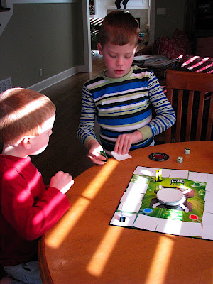 Fight aliens with Liam’s new Ben Ten Alien Force boardgame that he bought at Walgreen’s with his allowance that has been played umpteen times in the past four days.