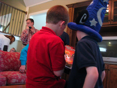 Liam and Colm checking out the new Transformer. (I have no idea why Colm has his Mickey hat on.)