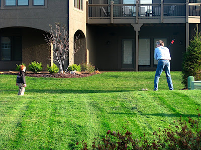 The guys went outside after cake and ice cream to play with Colm’s new baseball stuff. This is Colm with his Great-Uncle Rick.
