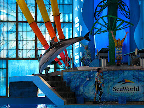 The dolphin and beluga show was AWESOME! It wasn’t just animals, it was like a Vegas show only in Texas. I didn’t take a lot of pics because I was too busy watching with my mouth hanging open. We also sat in the “splash zone”. We didn’t get too wet, but the people behind us got SOAKED!